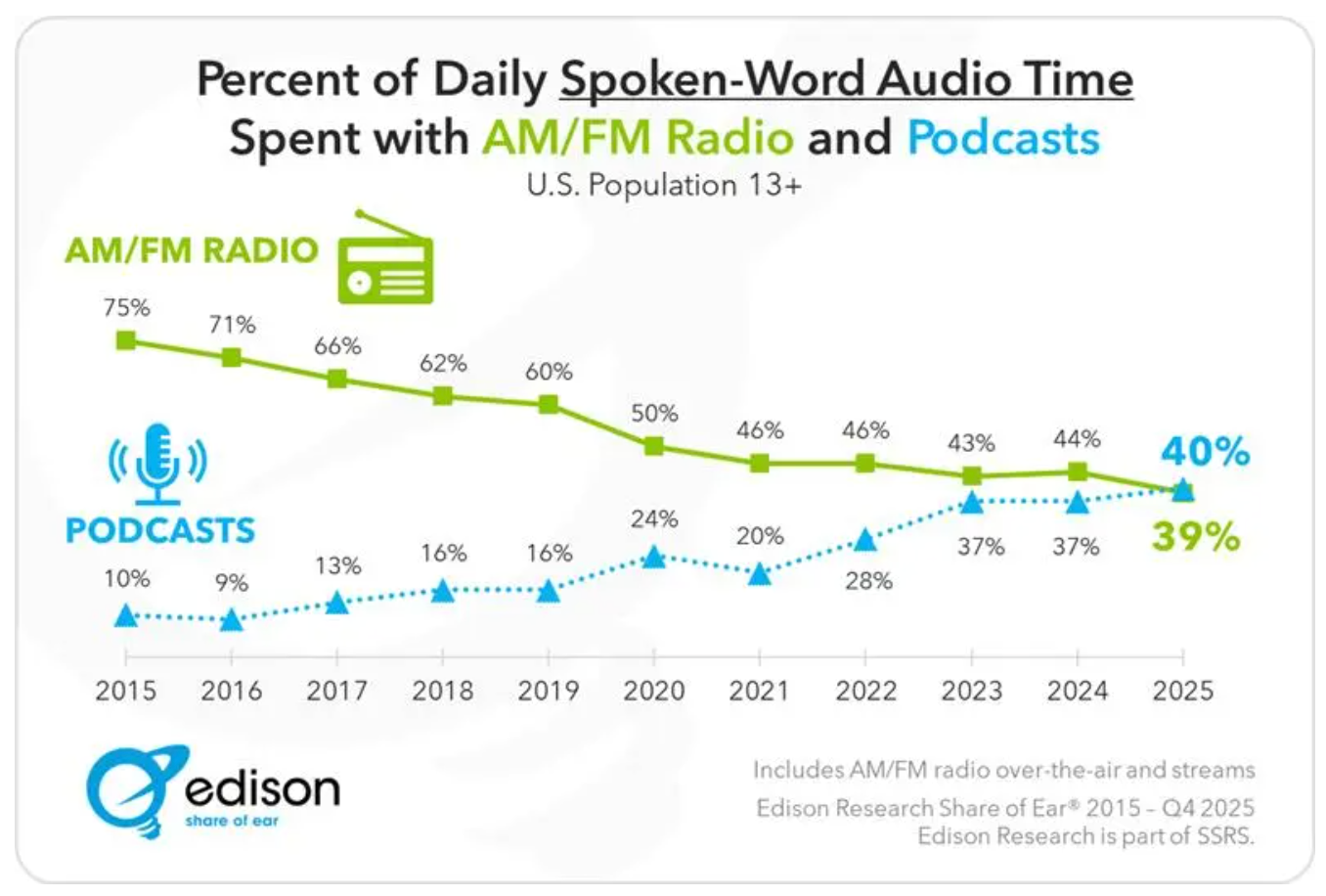 “Triton Digital’s U.S. Podcast Report for 2025 showed that 80% of consumers over 18 years of age tune into both audio and video podcasts; 13% only listen to audio, while 7% only watch video. Listener preferences also appear to vary greatly depending on a podcast’s genre, with podcasts about topics like music, sports, comedy, and news skewing more popular on video. Genres like science, history, art, fiction, and true crime are more often consumed via audio.”